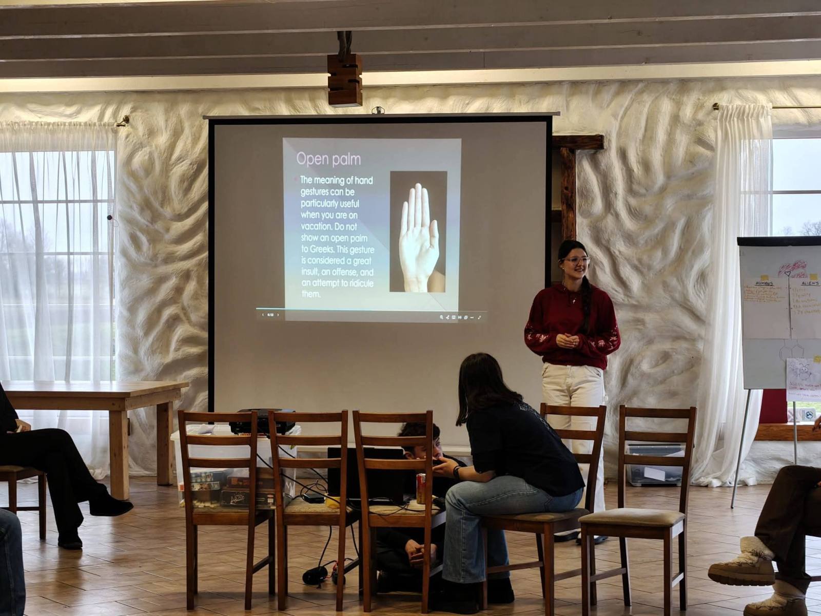 Podczas projektu grupy z każdego kraju prezentowały swoją ojczyznę, kulturę tradycję oraz narodową kuchnię. My przygotowaliśmy dla pozostałych uczestników polski przysmak – czyli pierogi ruskie oraz z kapustą i grzybami. Ulepiliśmy 500 pierogów, które gościły na stole podczas polskiego wieczoru kulturowego, poza tym omawialiśmy atrakcję, śpiewaliśmy hymn polski i tańczyliśmy poloneza.